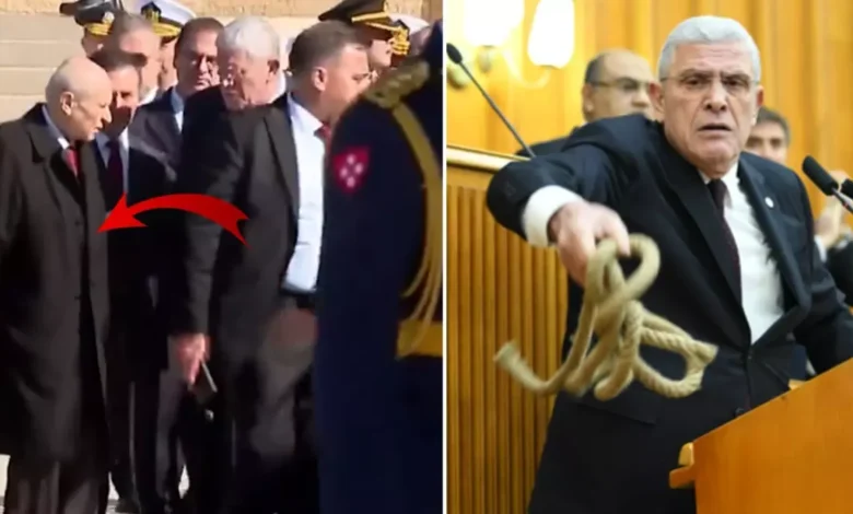 MHP lideri Devlet Bahçeli’nin Öcalan’a yönelik çağrısına İYİ Parti Genel Başkanı Dervişoğlu’ndan sert tepki geldi. Dervişoğlu, Bahçeli’nin çağrısını eleştirerek kürsüden idam ipi fırlattı. 29 Ekim Cumhuriyet Bayramı töreninde ise Bahçeli ve Dervişoğlu, birbirleriyle tokalaştı.