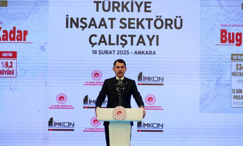 Çevre, Şehircilik ve İklim Değişikliği Bakanı Murat Kurum, İnşaat Müteahhitleri Konfederasyonu (İMKON) tarafından düzenlenen Türkiye İnşaat Sektörü Çalıştayı’na katıldı. Türkiye’nin deprem gerçeği karşısında kentsel dönüşümü milli güvenlik meselesi olarak gördüklerini ifade eden Bakan Kurum, yeni sosyal konut kampanyasıyla ilgili konuştu: Cumhurbaşkanımız 2012 yılında Türkiye’nin her yerinde kentsel dönüşüm anlayışıyla bir seferberlik ilan ettiler. Ve o günden bugüne de 3.7 milyon ev ve iş yerimizi sizlerle birlikte başarıyla dönüştürdük. Kentsel dönüşümle milyonlarca insanımızın can güvenliğini sağlarken diğer taraftan da vatandaşımıza TOKİ’yle uygun şartlarda ev sahibi olmasına imkan sağladık. Bu noktada 81 ilimizde değerli arkadaşlar, dile kolay 1 milyon 481 bin sosyal konut inşa ettik. Şu an deprem konutları dışında 312 bin sosyal konutumuzun inşası da hızla sürmektedir.
