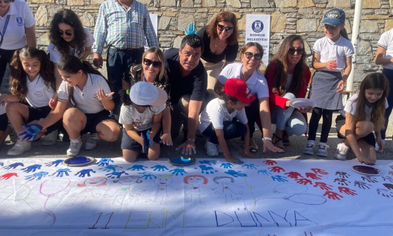 Sabah saatlerinde başlayan etkinlikte Bodrum Belediyesi logosu ile “11 Ekim Dünya Kız Çocukları Günü” yazılı dev boyuttaki kumaş üzerine renkli boyalar ile kız öğrenciler el baskısı yaptı. Etkinlik boyunca coşku dolu anlar yaşanırken tüm renkleri ayrı ayrı kullanarak yaptıkları rengarenk el baskıları, okulda görsel bir şölen oluşturdu. Etkinlik süresince Başkanvekili Halil Eser, öğrenciler ile birlikte el baskısı yaparak kız çocuklarının mutlu gününde sevinçlerine ortak oldu.