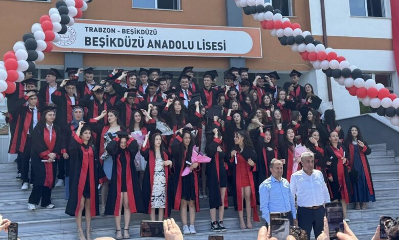 Trabzon’un Beşikdüzü ilçesinde eğitim veren Beşikdüzü Anadolu Lisesi 15. dönem mezuniyet töreninde 80 öğrenci okul bahçesinde kep fırlatarak öğretmenleri ve aileleriyle büyük bir mutluluk yaşadı.