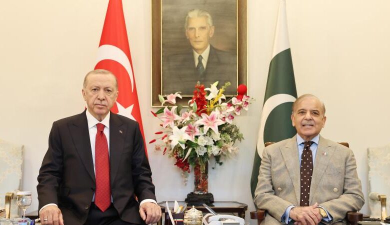 Cumhurbaşkanı Recep Tayyip Erdoğan, resmi temaslarda bulunmak üzere geldiği Pakistan‘ın başkenti İslamabad’da, Başbakan Şahbaz Şerif ile bir araya geldi. Başbakanlık Binası’nda basına kapalı olarak gerçekleştirilen görüşmeye, Türkiye’nin Dışişleri Bakanı Hakan Fidan, Enerji ve Tabii Kaynaklar Bakanı Alparslan Bayraktar, Milli Savunma Bakanı Yaşar Güler, Sanayi ve Teknoloji Bakanı Mehmet Fatih Kacır, Tarım ve Orman Bakanı İbrahim Yumaklı, Ticaret Bakanı Ömer Bolat, Türk Devletleri Teşkilatı (TDT) Aksakallar Konseyi Başkanı Binali Yıldırım ve Cumhurbaşkanlığı İletişim Başkanı Fahrettin Altun da katıldı. Görüşmede, iki ülke arasındaki ilişkilerin güçlendirilmesi ve çeşitli iş birliği alanları ele alındı.
