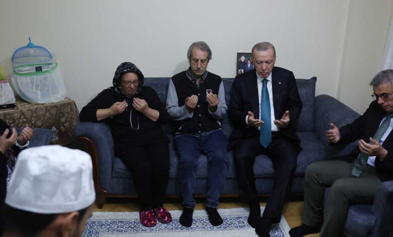 Ziyaret sırasında dualar okunurken, Cumhurbaşkanı Erdoğan, aileye taziyelerini iletti ve sabır diledi.