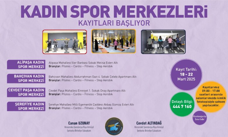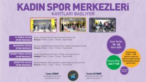 Spor merkezlerinde Pilates, fitness, cardio gibi dersler, belediyenin alanında uzman eğitmen kadrosuyla kadınların hem fiziksel hem de zihinsel olarak güçlenmesi için verilecek.