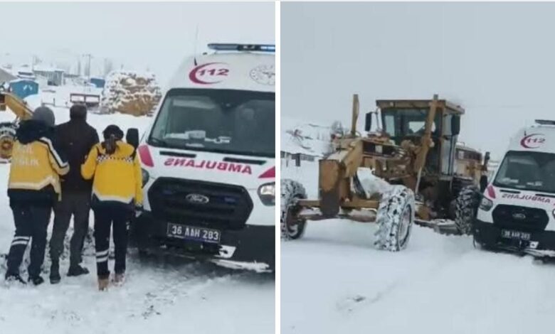 Ekiplerin çalışmasının ardından yolu açılan köye ulaşan sağlık ekipleri ilk müdahalenin ardından hastayı Selim Devlet Hastanesine kaldırıldı.