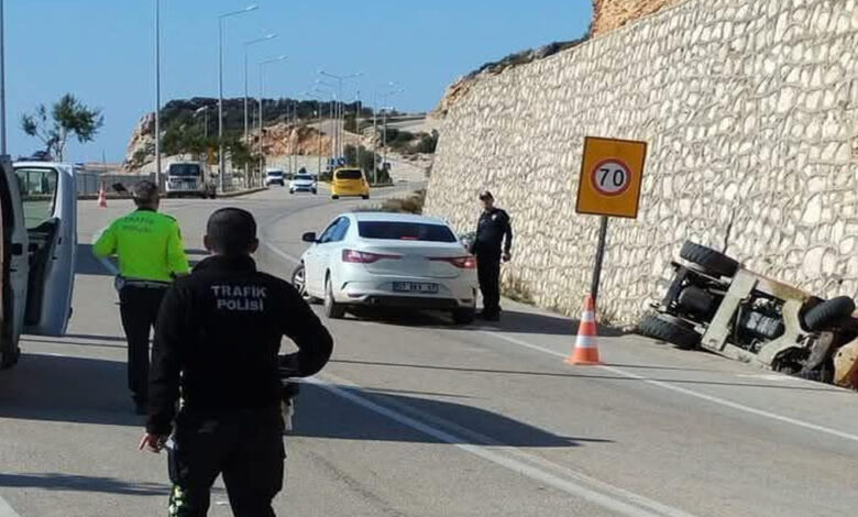 Olay, D-400 Kaş-Kalkan karayolunda meydana geldi. Seydikemer Kadıköy mahallesinden Mustafa Yeşil (51) yönetimindeki forklift, yürüyüş yolu parke çalışması sırasında kamyondan taşların indirildiği sırada geri geri hareket ederken kontrolden çıkarak refüje devrildi. Kazada forkliftin altında kalan Mustafa Yeşil, ağır yaralandı.