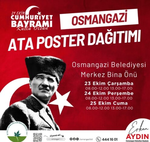 Bursa’da Osmangazi Belediyesi, 29 Ekim Cumhuriyet Bayramı etkinlikleri kapsamında vatandaşlara Ata Posteri dağıtacak.