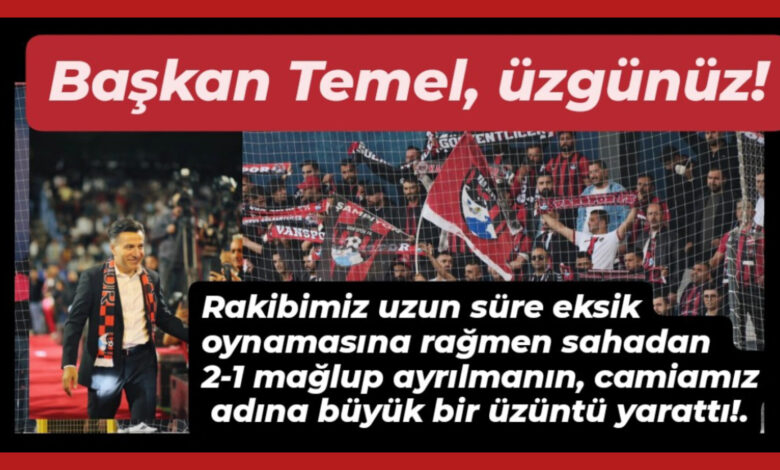 Karşılaşmanın ardından Vanspor Kulüp Başkanı Erol Temel, sosyal medya hesabı üzerinden yaptığı açıklamayla taraftarlara seslendi. Temel, yenilginin üzüntüsünü dile getirirken birlik ve inanç mesajı verdi.