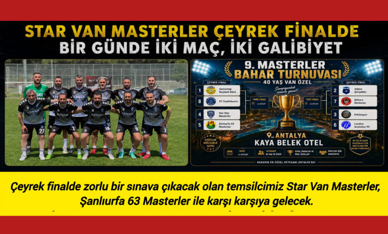 Van adına Antalya’da bu yıl 9’uncusu düzenlenen Masterler Bahar Turnuvası’nda mücadele eden Star Van Masterler, sergilediği etkileyici performansla adını çeyrek finale yazdırdı. Aynı gün oynadığı iki karşılaşmadan da galibiyetle ayrılan temsilcimiz, turnuvanın dikkat çeken ekiplerinden biri olmayı başardı.