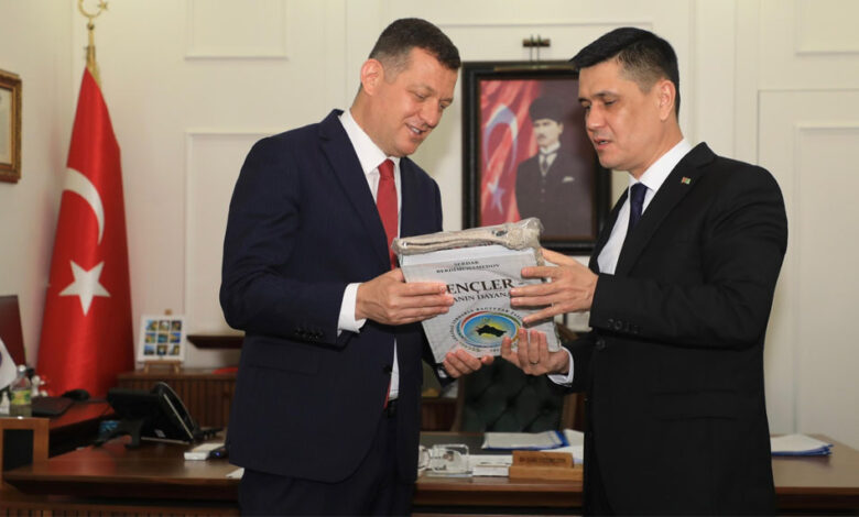 Türkmenistan’ın Ankara Büyükelçisi Mekan İsanguliyev, beraberindeki heyetle birlikte Alanya Kaymakamı Dr. Fatih Ürkmezer’i makamında ziyaret etti.
