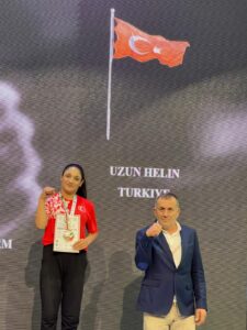 Tuşba Gençlik ve Spor ilçe müdürlüğü sporcusu millî gururumuz Helin Uzun, 18yaş altı gençler kategorisinde 65 kilogram sağ ve sol kolda dünya ikinciliği ve dünya üçüncülüğü elde ederek, Türkiye’ye iki gümüş madalya kazandırdı.