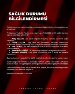 Kulübün resmi sosyal medya hesaplarından yapılan bilgilendirmede, futbolcuların sağlık durumlarına ilişkin son gelişmeler paylaşıldı.