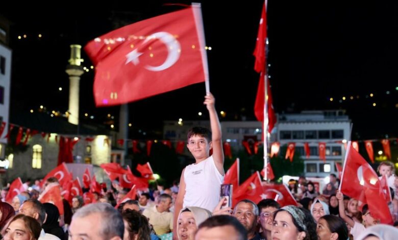 Ordu, hain darbe girişiminin 9’uncu yılında da 15 Temmuz ruhunu yeniden yaşadı. Bu yıl ‘Zaferin Adı Türkiye’ teması ile düzenlenen etkinliklerde Ordu Büyükşehir Belediyesi önüne akın eden vatandaşlar alanı Türk bayrakları ile kırmızı beyaza bürüdü.